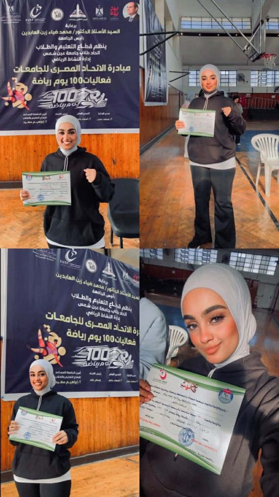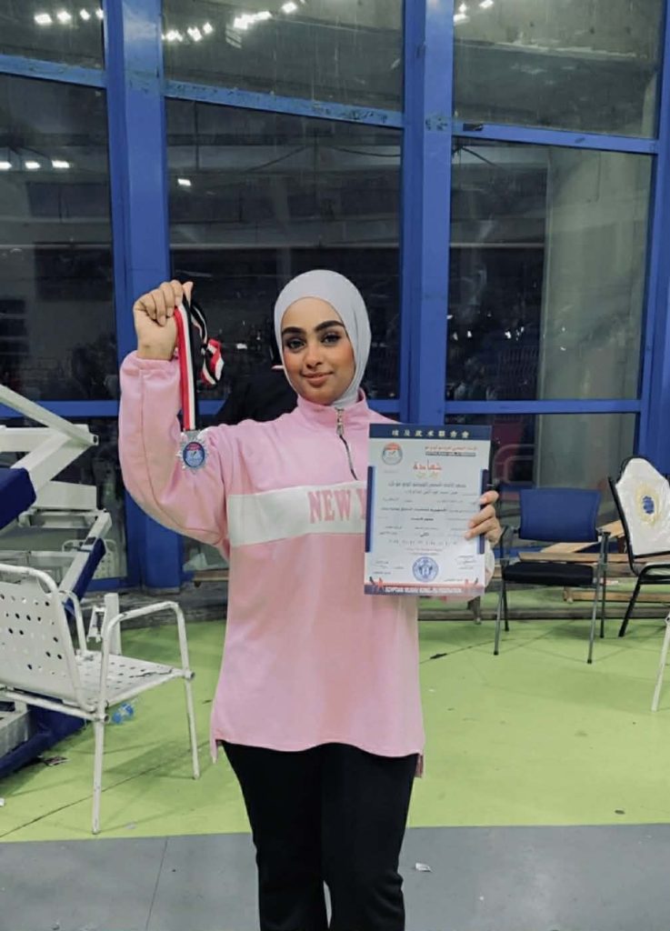ولم تتوقف إنجازاتها عند البطولات المحلية فقط، بل انضمت أيضًا إلى فريق منتخب مصر، وهو إنجاز كبير يعكس كفاءتها ومستواها المتميز في رياضة الكونغ فو. كما شاركت خلال دراستها الجامعية في بطولات الجامعة لمدة ثلاث سنوات متتالية، وتمكنت خلالها من تحقيق المركز الأول، مما يؤكد استمرار تفوقها الرياضي في مختلف المنافسات.