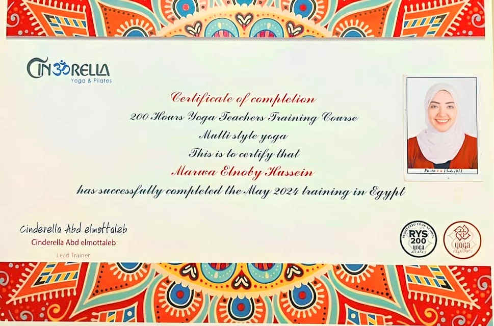 🌸 قضيت 16 سنة من حياتي في شغل الشركات — روتين، 9 ساعات كل يوم، تحكمات، وضغط، وتقدير = صفر تقريبًا 🙈 وفجأة سألت نفسي: “ليه أعيش حياتي كده وأنا عندي حلم بحبه؟” وقررت أبدأ من جديد 💪✨ بدأت أتمرن يوجا من حوالي 4 سنوات ، حبيتها أوي، ومع الوقت شغفي بيها زاد لدرجة قررت أدرسها بجد. درست وحصلت على 200 ساعة تدريب مدربي اليوجا المعتمدة من Yoga Alliance، وبدأت أدرّس من حوالي سنة ونص. وفي 2024 أسست مشروعي اللي هو قلبي ❤️ Elnoby Yoga Flow. اليوجا غيّرتني في كل حاجة — في طريقة تفكيري وهدوئي واستقبالي للأمور، خلتني أخلع النظارة السودة اللي كنت شايفة بيها الدنيا، وبدأت أشوفها بالألوان 🌈 وأخيرًا، فعلاً، شميت نفسي بفضلها 🧘‍♀️ ومن حبي في المجال، اكتشفت إن التغذية جزء لا يتجزأ من الرياضة، فقررت أكمل وأدرس تغذية رياضية في جامعة عين شمس، والحمد لله خلصت الدراسة بتقدير جيد جدًا، وفي انتظار الشهادة الرسمية 🎓 كمان حضرت ورشة تغذية رياضيين مع د. محمد زلط تحت إشراف الجامعة المصرية الصينية وNutri Lifestyle Club. دلوقتي بقدّم سيشنز متنوعة زي: Hatha Yoga – Yin Yoga – Aqua Yoga – Pilates – Meditation – Stretching – Mobility في أماكن مختلفة: 📍 Elnoby Yoga Flow – New Cairo 📍 212 Gym – Nasr City 📍 Level Fitness Gym – Nasr City وكمان بقدّم جلسات Private وOnline
