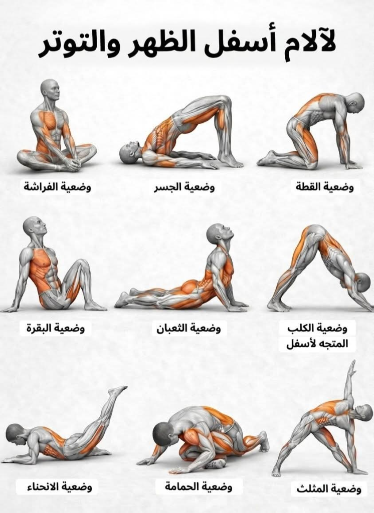 - وضعية الكوبرا (الثعبان) → بتفرد الضهر وتقلل الألم