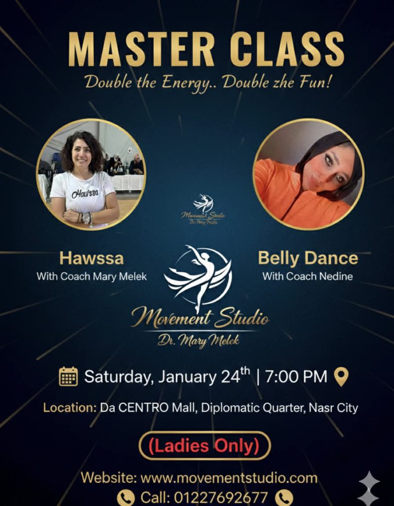 في وسط زحمة اليوم والروتين المتكرر، كل واحدة فينا بتحتاج مساحة تفرّغ فيها طاقتها وتعبّر عن نفسها بحرية. من هنا جات فكرة Mix Class… تجربة مختلفة بتجمع بين رقص الهاوسا بطاقته القوية وإيقاعه الأفريقي المليان حياة، والرقص الشرقي بإحساسه وأنوثته وتعبيره العميق.