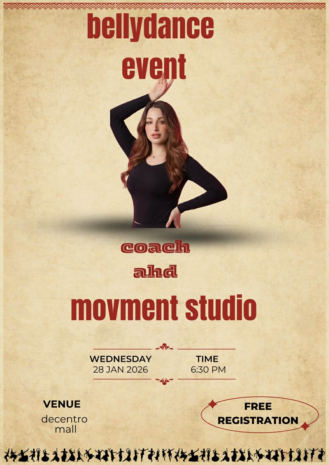 إليك نصًا مشوقًا لإعلان عن الأفنيت:—🌟 **انضم إلينا لتجربة فريدة!** 🌟📅 **التاريخ**: [يوم الحدث] 🕡 **الوقت**: 6:30 مساءً 📍 **المكان**: Moment Studio ✨ **أستعد لحضور حدث رائع مع Belly Dance وCaptain & Bossy Ahd**! هذا هو الوقت المناسب لتعيشوا لحظات مليئة بالنشاط والحيوية.🤩 **دكتور ماري ملك**، لدينا يوم مليء بالأنشطة الممتعة والعروض المثيرة. انضموا إلينا لتكونوا جزءًا من هذا الاحتفال الذي سيجمع بين الحركة والموسيقى، وفرصة للتواصل مع أصدقاء جدد!🎉 لا تفوتوا هذه التجربة المثيرة! اجلبوا طاقتك وشاركوا المتعة.**كونوا هناك، واستعدوا للرقص والمرح!** 💃🕺— يمكنك تعديل التفاصيل حسب الحاجة